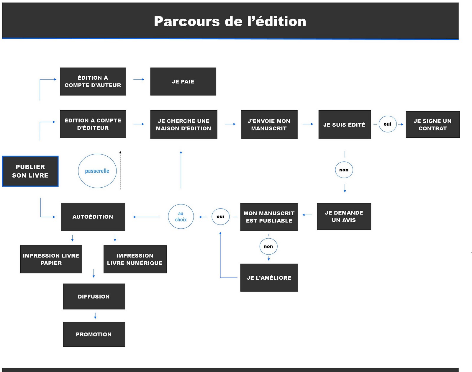 Dans l'autoédition, c’est l’auteur qui prend en charge la publication de son livre, soit qu’il n’a pas trouvé de maison d’édition qui accepte de l’éditer, soit qu’il ne tient pas à céder ses droits, ou encore qu’il veut réaliser un tout petit tirage, incompatible avec les solutions d’impression des éditeurs classiques. Il doit alors trouver un correcteur pour relire son manunuscrit, un graphiste pour la mise en page, un imprimeur, suivre les obligations légales, tout comme un éditeur, réaliser la diffusion et la promotion de son livre.
